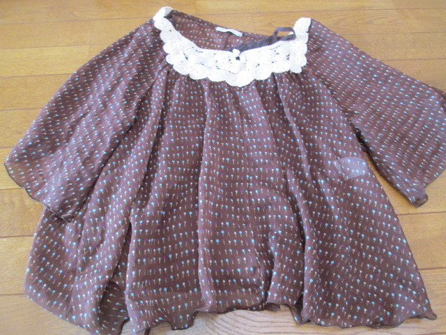 - M ELLE PLANETE 半袖茶色柄のカットソー キャミソール付き