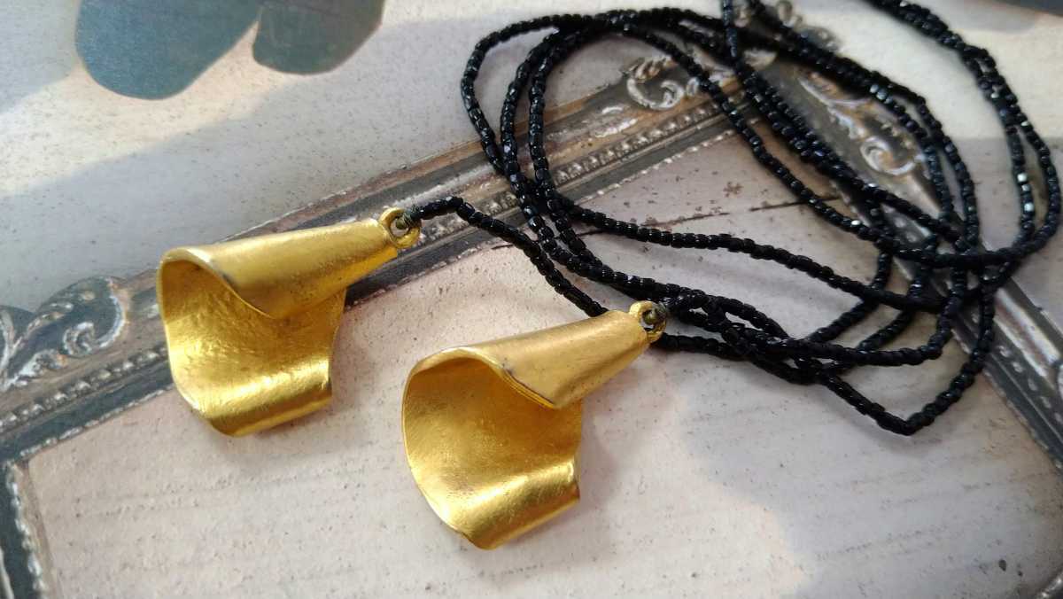 - □巻ゴールドカラーチャーム×黒ビーズネックレス□