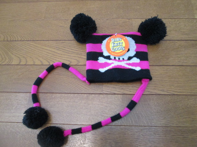 - 34㎝ ピンクと黒のボーダー ニット帽 タグ付き