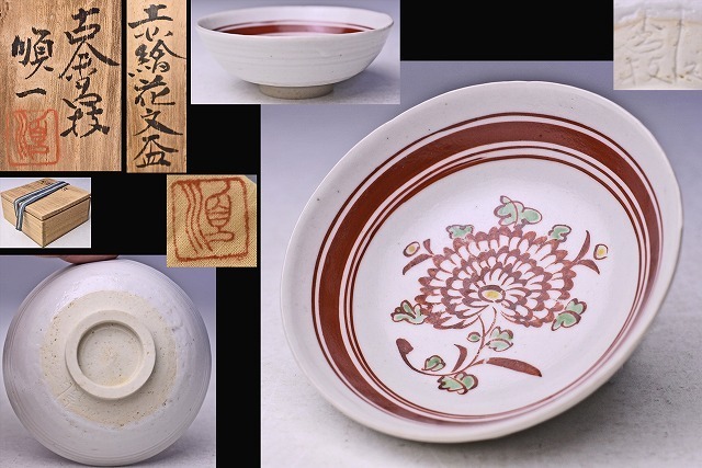 > 川瀬順一 (川瀬竹春2代)★ 赤絵花文盃 ★ 共箱共布 ★ 宋赤絵風 ★ 川瀬竹翁 川瀬忍 川瀬竹志 川瀬満之 ゆかり ★ ぐい呑 ★ 古余呂技窯