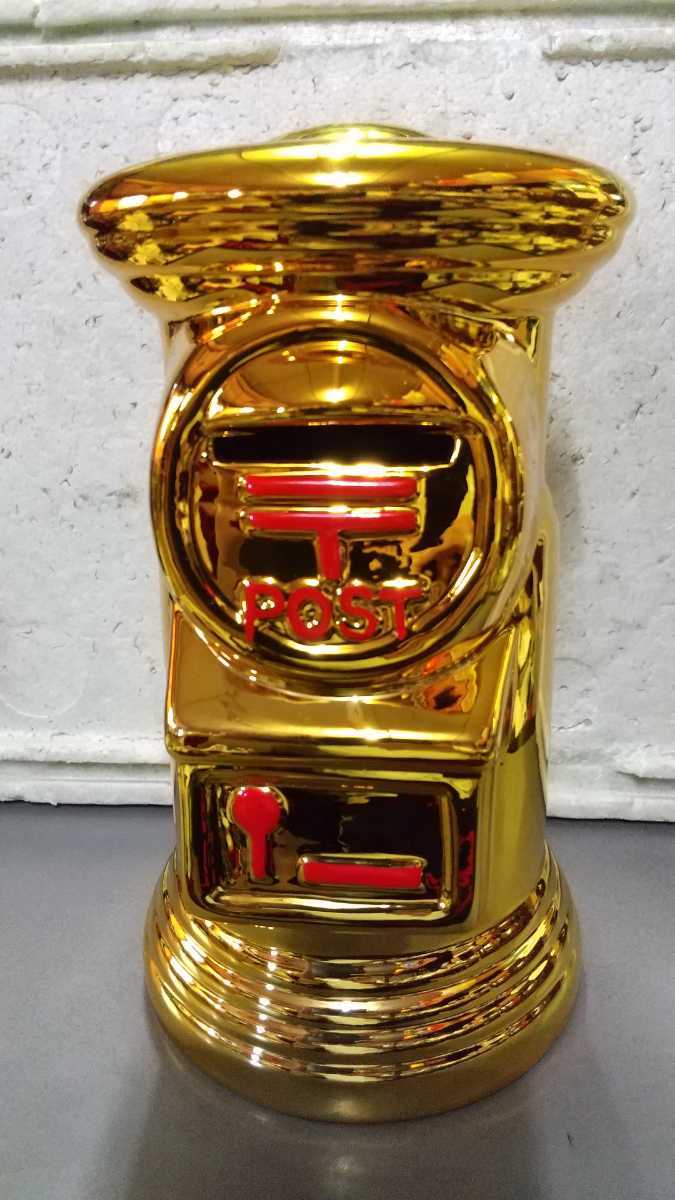- 郵便ポスト 金色 ゴール ゴールカラー 貯金箱 昭和レトロ アンティーク 高さ30cm 当時物