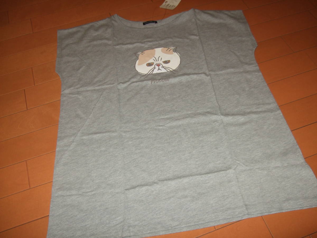 - 新品タグ付即決☆猫デザイン ボックスTシャツ☆サイズM~L グレー