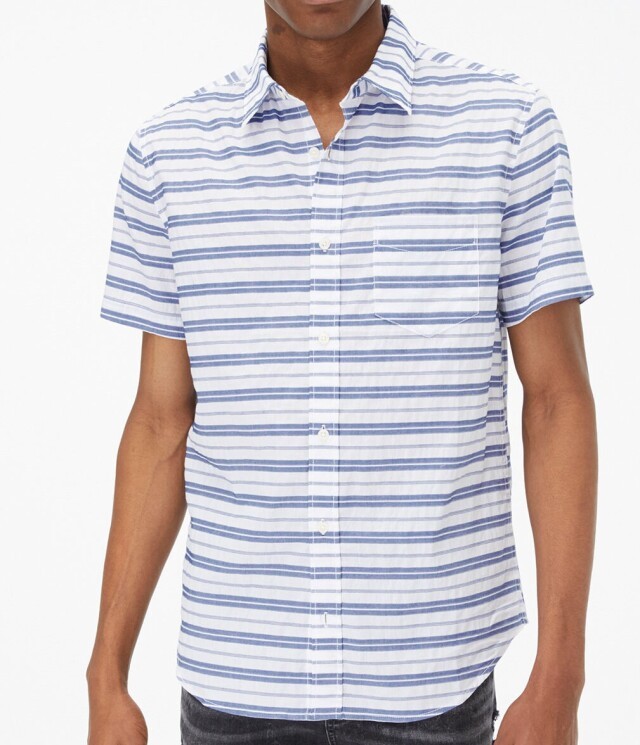 > ●送料無料●大きいサイズ Aeropostale ストライプ半袖シャツ(ブリーチ/ネイビー)【USサイズ/3XL】