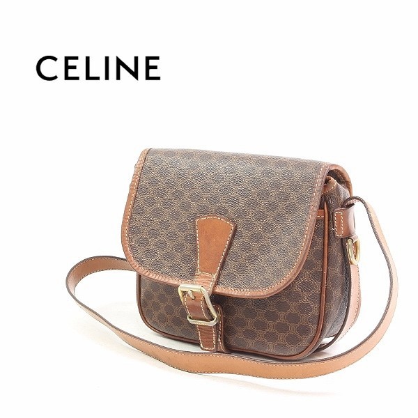 - ◆CELINE/セリーヌ PVC×レザー マカダム柄 斜め掛け ショルダー バッグ ブラウン