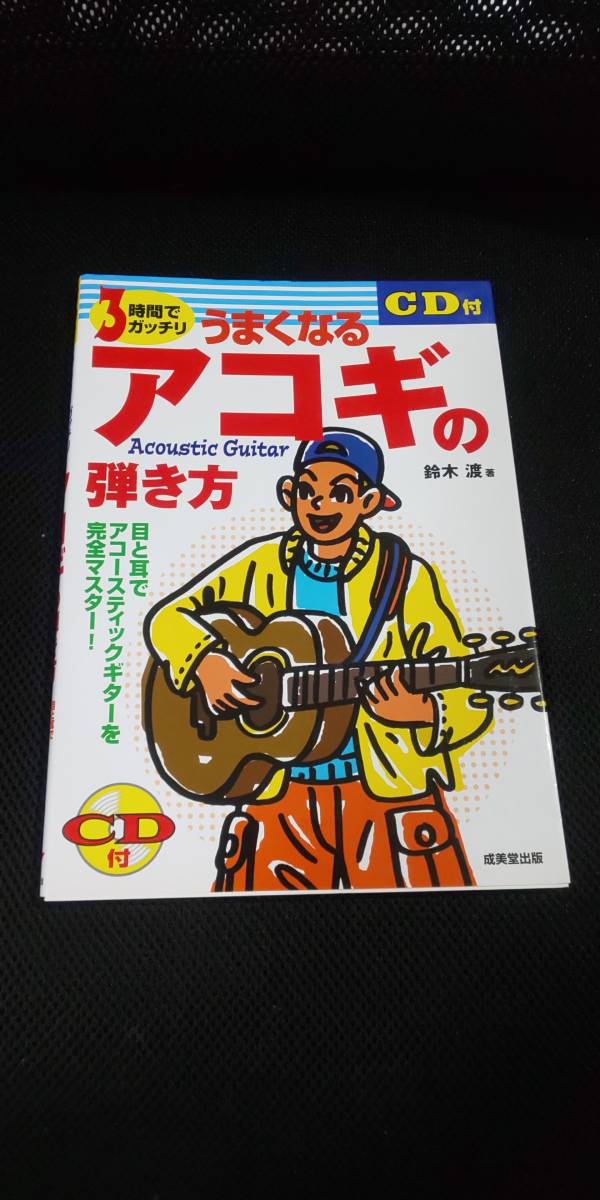 - ■ 3時間でガッチリうまくなるアコギお弾き方 鈴木渡 アコースティックギター 教則本 練習 成美堂出版 CD付き 未開封 2006年 初心者