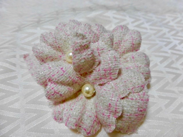 - ●未使用 ピンクツイードの花束/コサージュ/ブローチ /清楚なパール芯/スーツ、ワンピースの胸元に