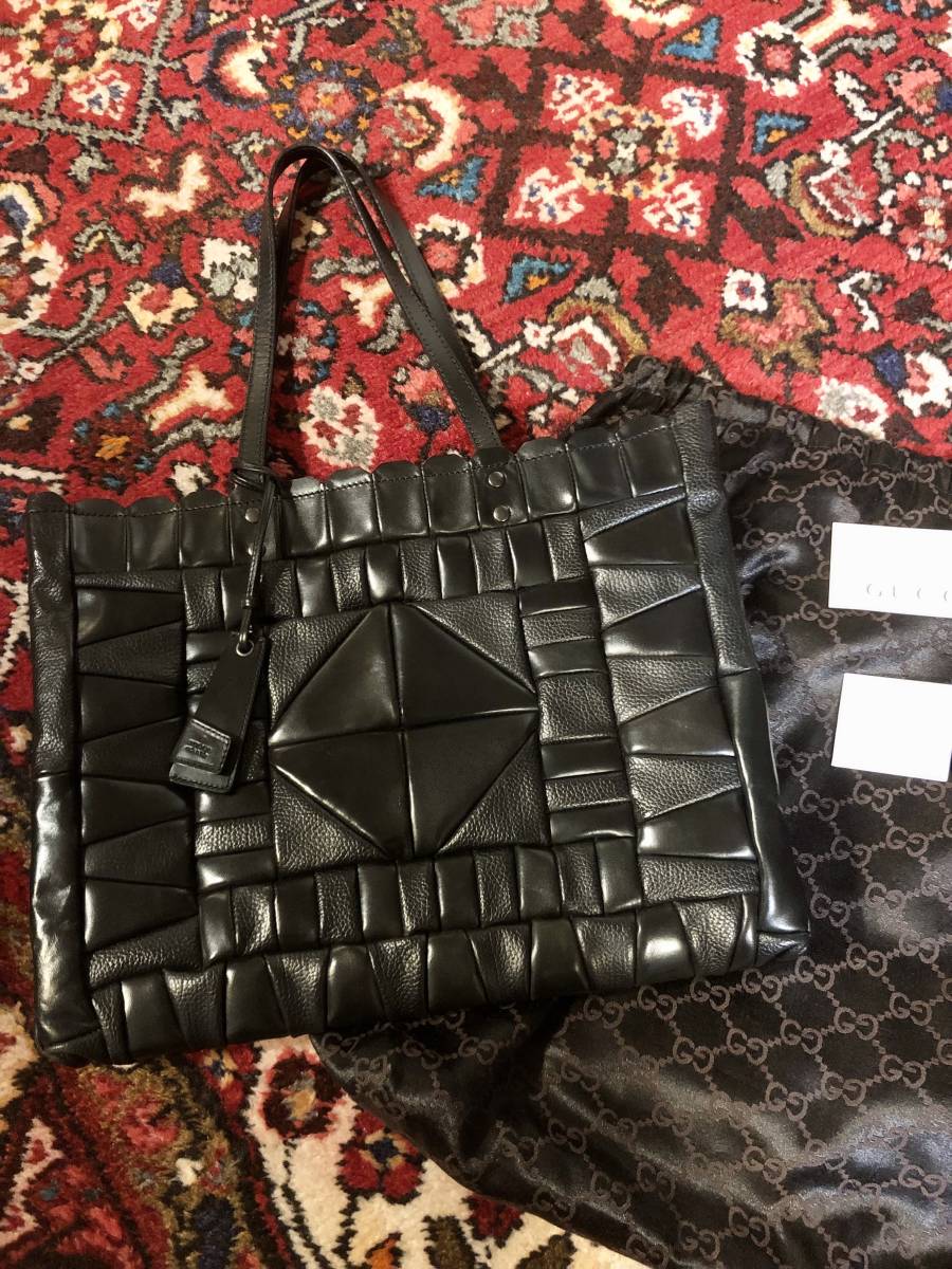 - ■ GUCCI グッチ 革パッチワークバッグ セミショルダー カーフ 黒 高級ライン トートバッグ 28万円