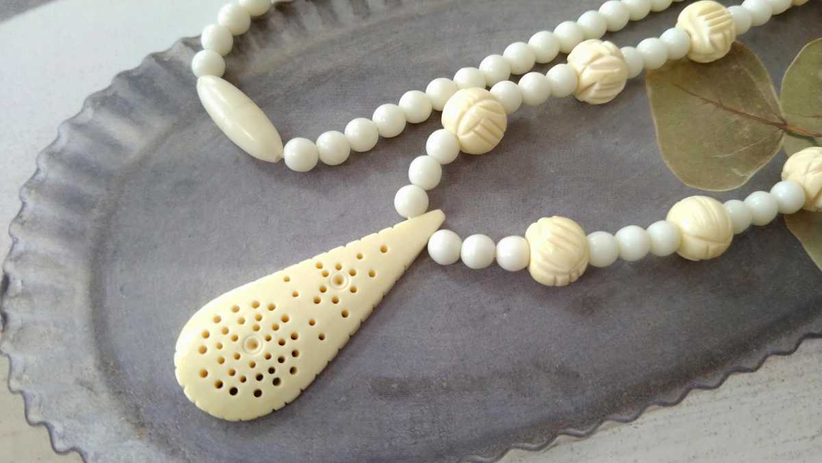 - □ホワイト&ホワイトベージュ系・雫型チャーム付きネックレス□