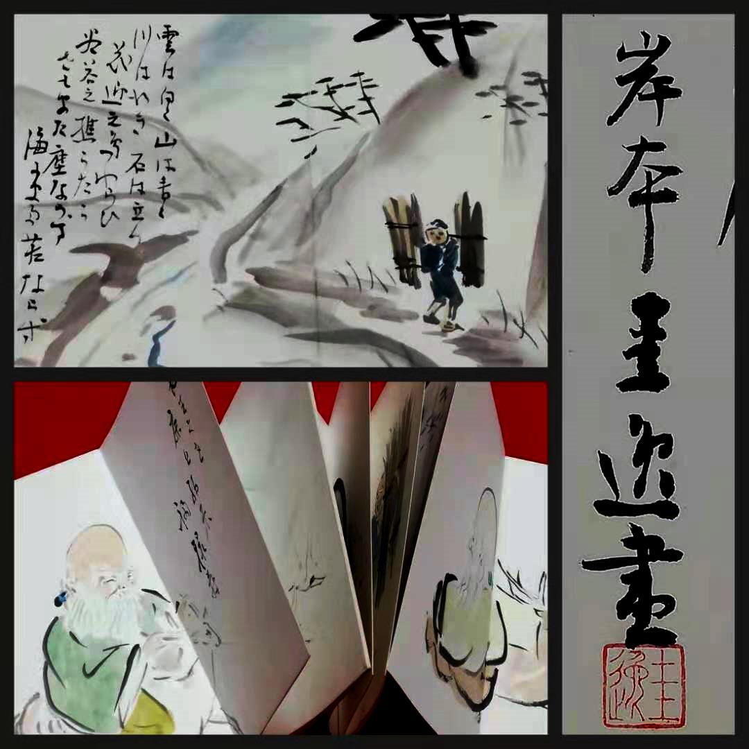 - 1972年 岸本圭逸 習画帖 折帖 検索: 南画 日本画家 浮世絵 着色 着彩 水彩 肉筆 朱印 印譜 原色 原画 版画 落款 在銘 川合玉堂 古美術 掛軸