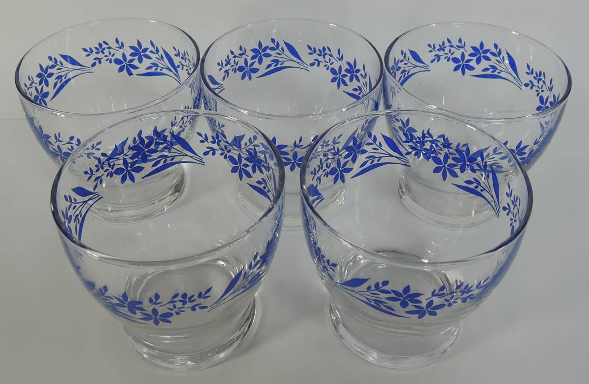- ☆V10 昭和レトロ■青色 花柄 冷茶 グラス/ガラスコップ 5個■未使用