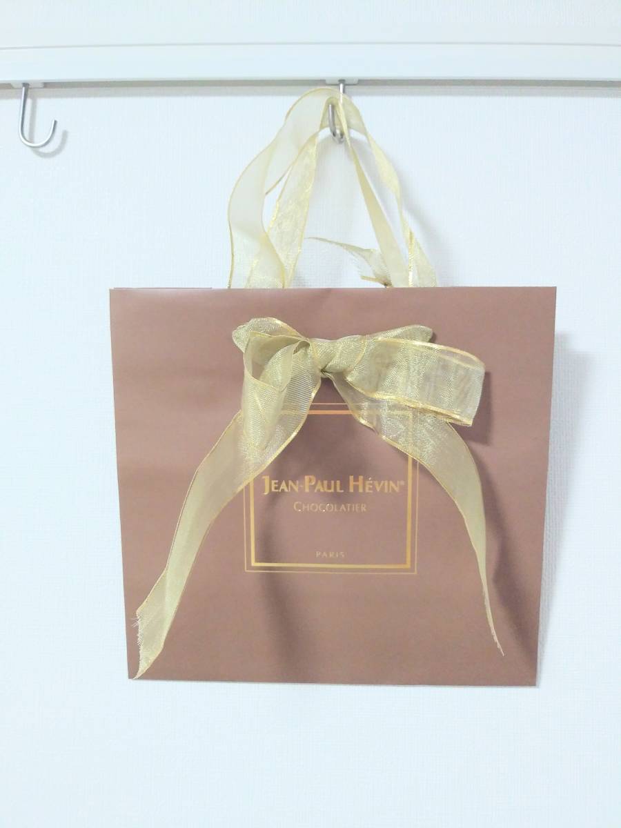 - JEAN-PAUL HEVIN ジャン=ポール・エヴァン チョコレート ショッパー 紙袋 袋 中サイズ 金色リボン ゴールドリボン