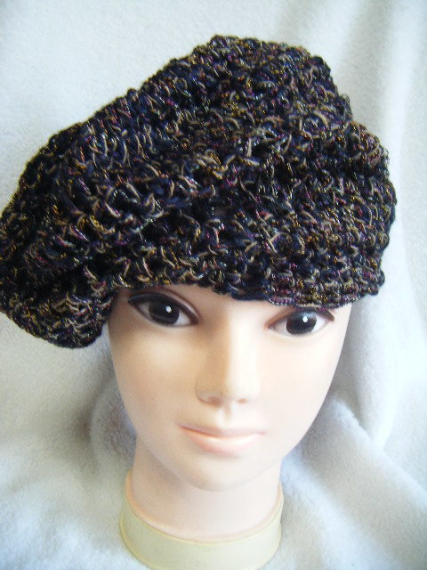 - 春、秋、冬*ベレー帽風*手編男女兼用*渋いミックス色 46c