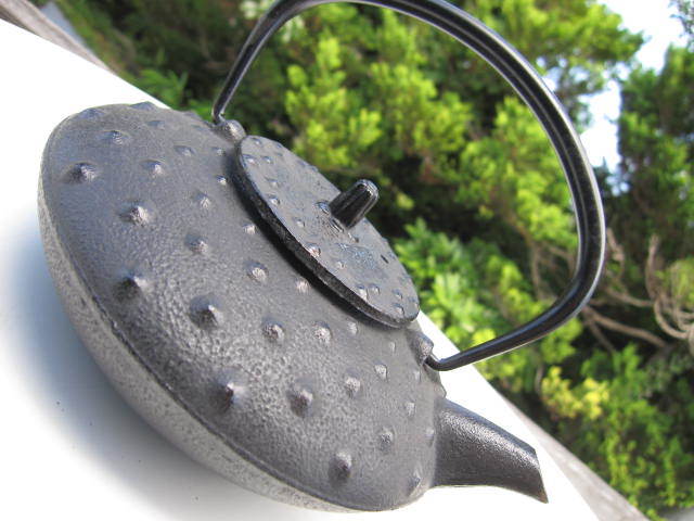 - ☆南部鉄器でおいしく。 じょか 燗瓶 あられ 内面ホーロー仕上 0.5L おちょこ付き 中古☆