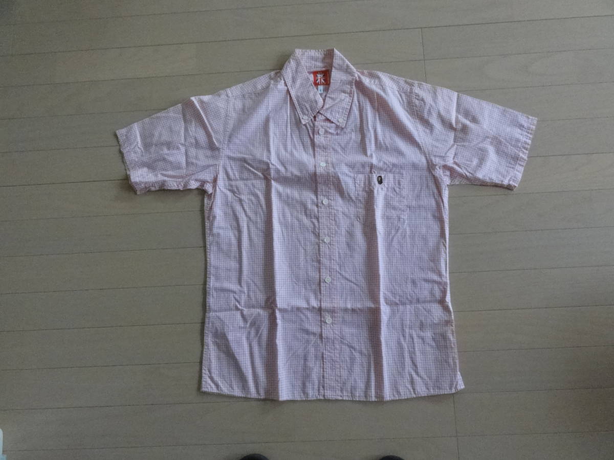 - 美品 A BATHING APE 半袖シャツ Sサイズ ピンクチェック