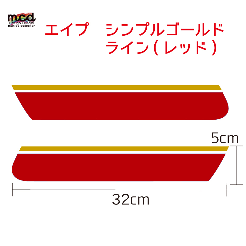 - エイプ ape 50/100 タンク デカール 赤 ゴールド ライン カスタム イメチェン 簡単 シンプル ステッカー