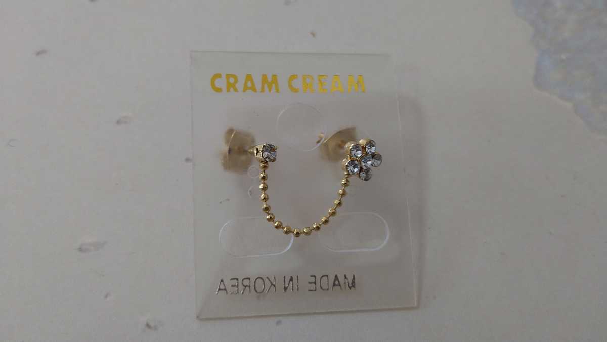 - □CRAM CREAM□ゴールドカラー×ラインストーン・チェーン&お花ピアス□