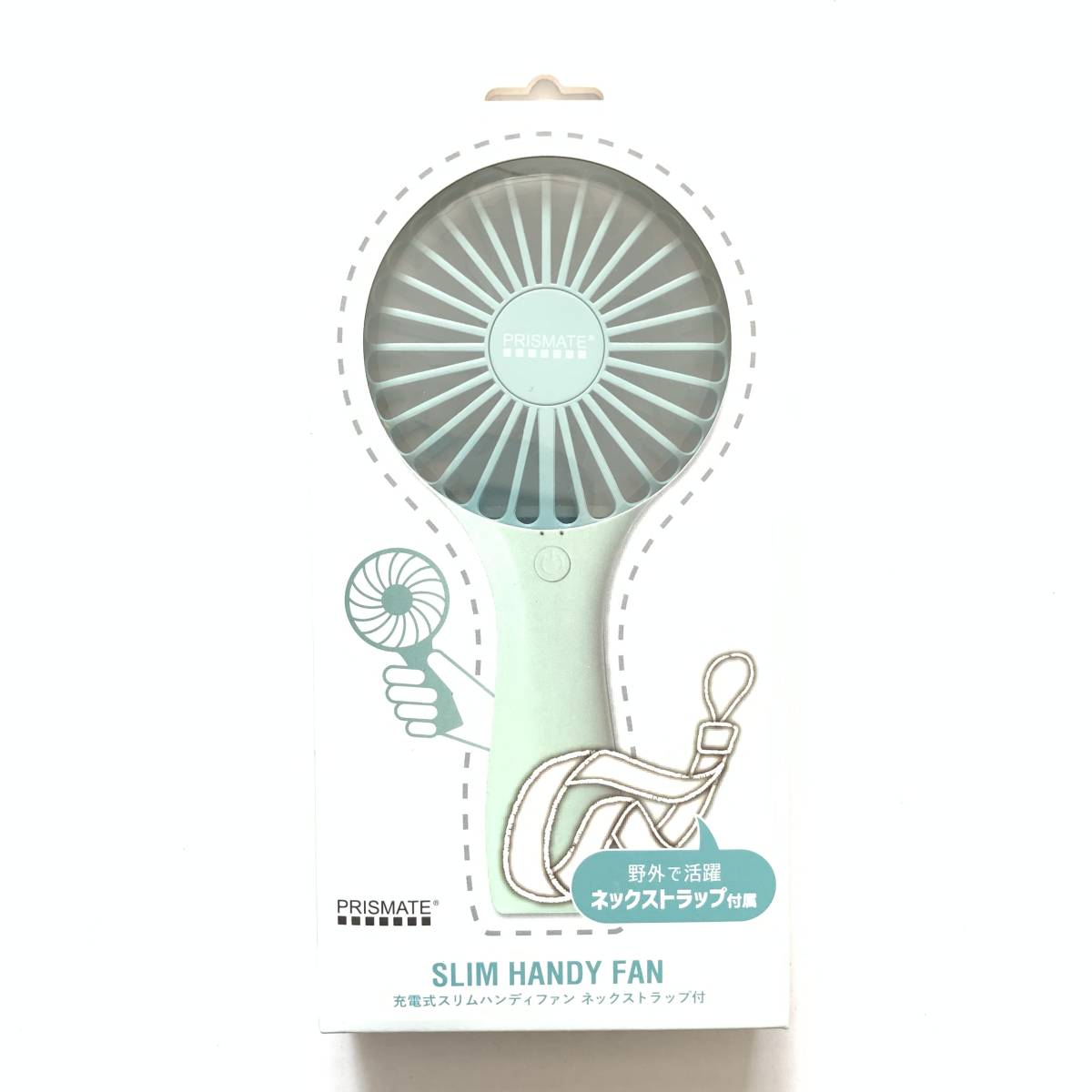 - 新品 即決 ◆RECHARGEABLE 充電式 スリム ハンディファン ネックストラップ付き (パウダーブルー)◆ 扇風機 手持ちタイプ