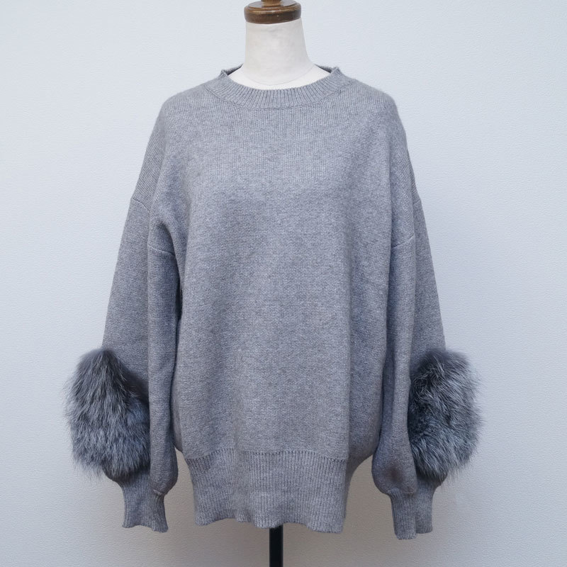 - yr30-セーター ニット 袖ファー付 グレー 長袖 ざっくり ニット 可愛い トップス