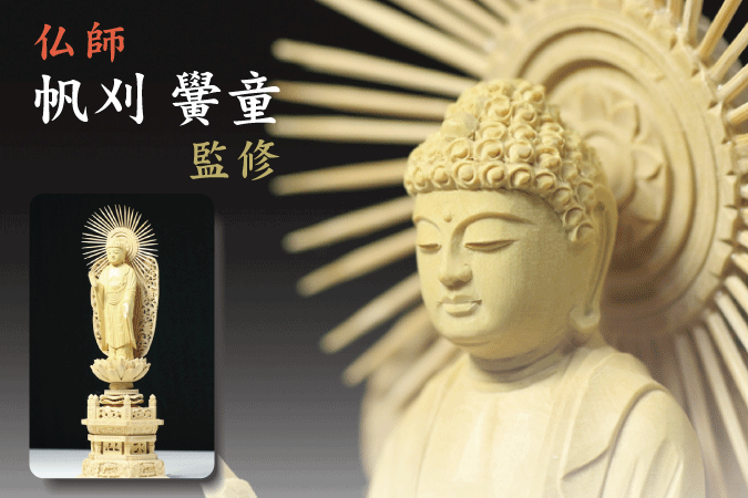 > 仏像 ■ 4.5寸 ■ 阿弥陀如来立像 六角台座 総柘植 浄土真宗 高田派 ご本尊 ■ 仏具 (高さ32.8cm×幅12.8cm×奥行き9.3cm)