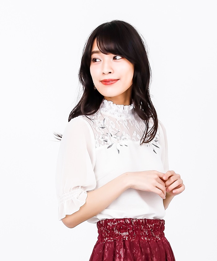 > 464◇刺繍入りプルオーバー 白 ホワイト axes femme アクシーズ ファム CI21X10 五分丈
