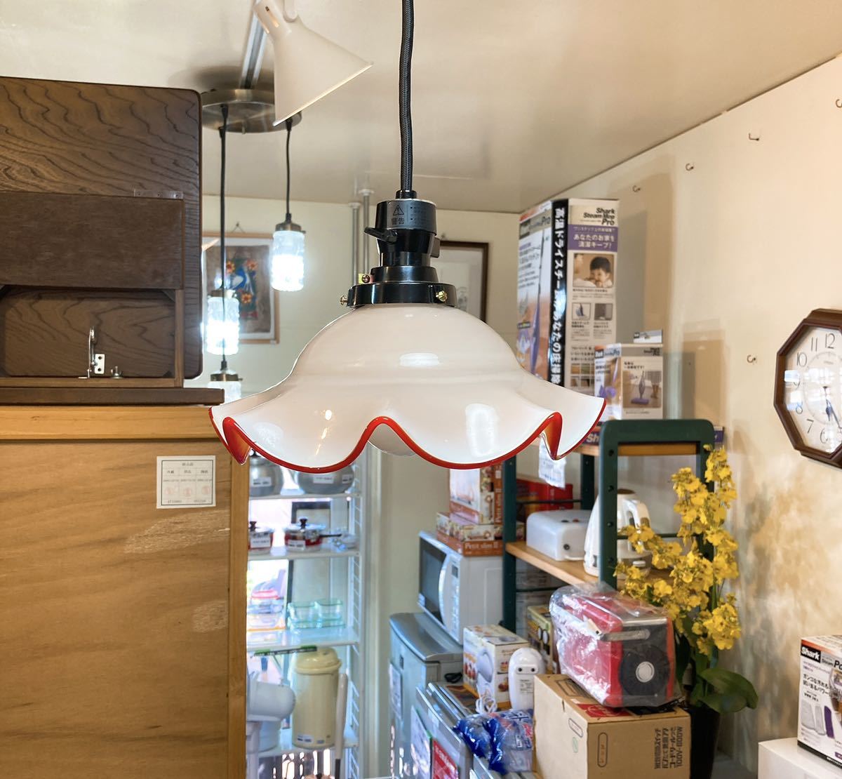 - [昭和レトロ 電傘]吊り下げ照明/照明器具/ミルクガラス/大正ロマン/ペンダントライト/アンティーク照明