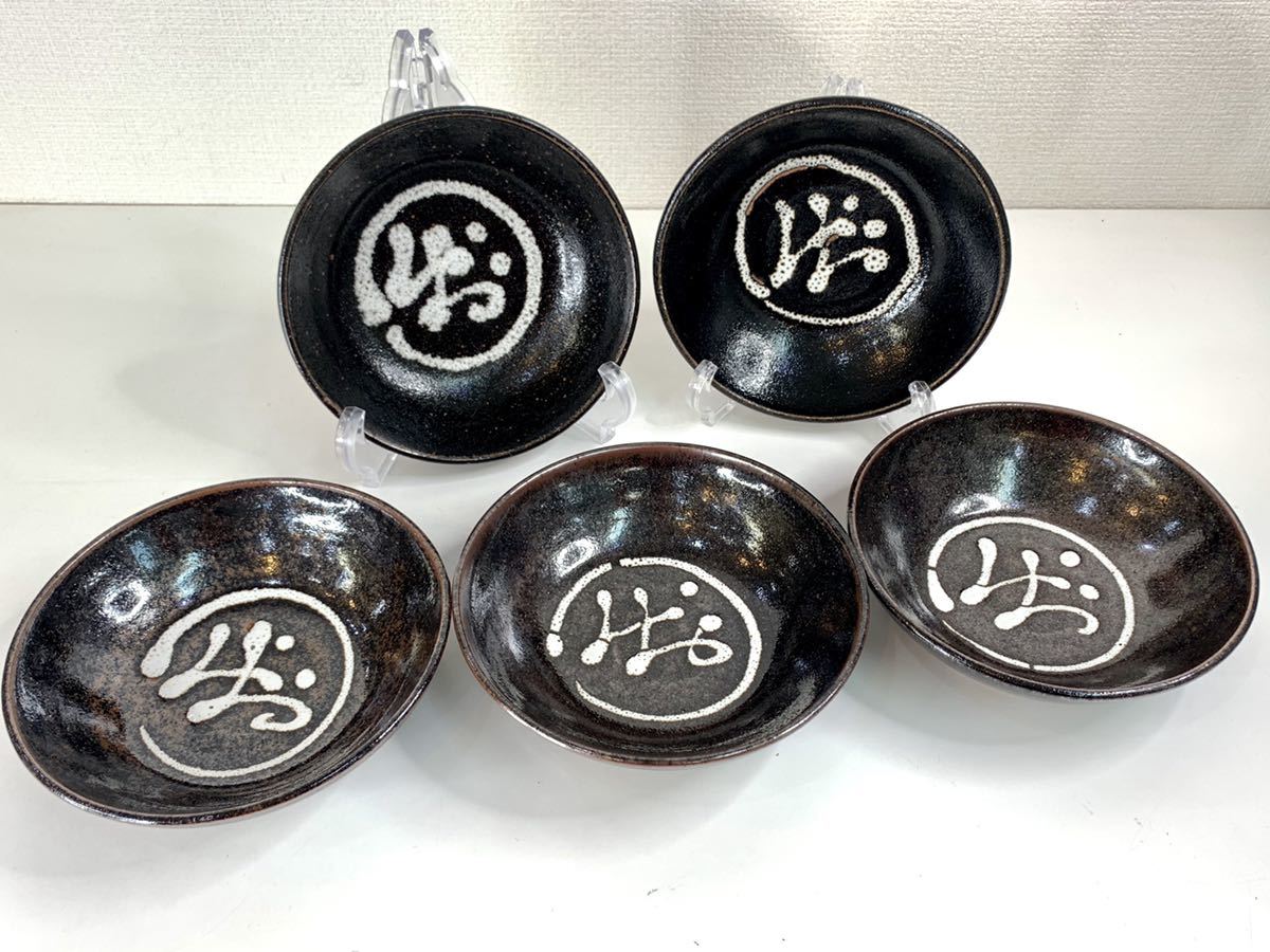 - 極美品▼京焼 西西窯 岩淵重哉 骨董品 和食器 中鉢 裏刻印あり 5客揃 黒 その2 管理2109 D-15