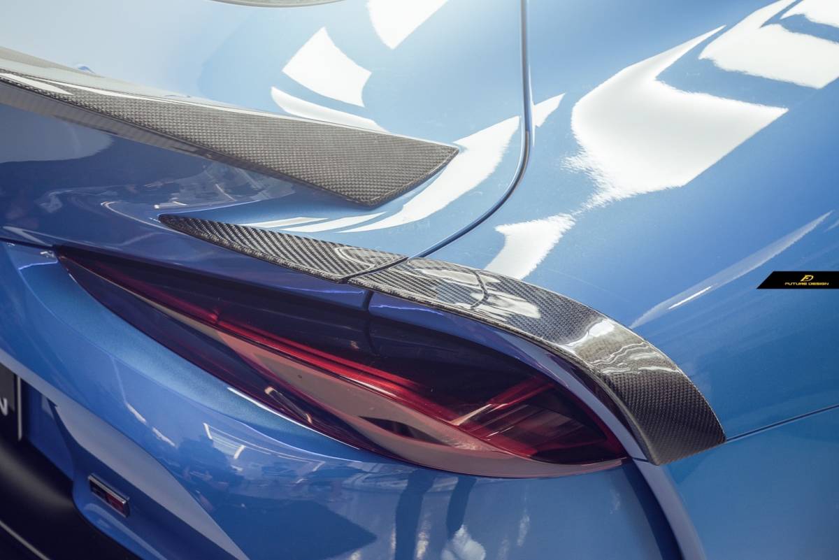 - 【FUTURE DESIGN】TOYOTA トヨタ A90 SUPRA スープラ SZ SZ-R RZ アイライン 4点 本物Drycarbon ドライカーボン カスタム リアスポイラー