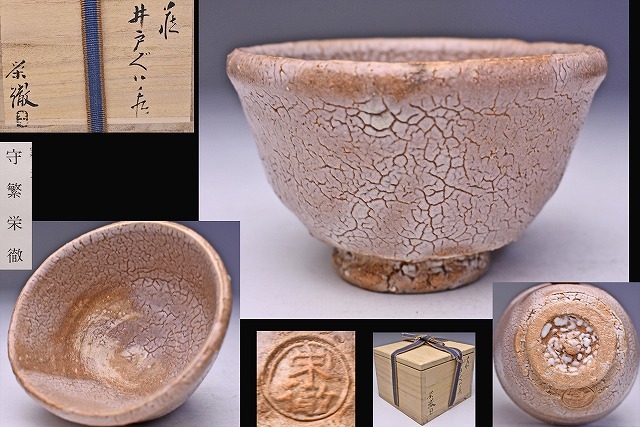 > 守繁栄徹 ★ 萩 井戸 ぐい呑 ★ 共箱 栞 ★ 御茶碗をそのまま小さくした様な見事な造形に梅花皮が良い景色の上作 ★ 酒器★