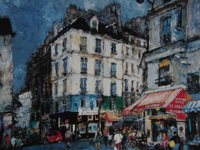- 児玉幸雄、街角のカフェー、希少画集画、状態良好、新品高級額装付、送料無料、洋画 油彩 風景、so