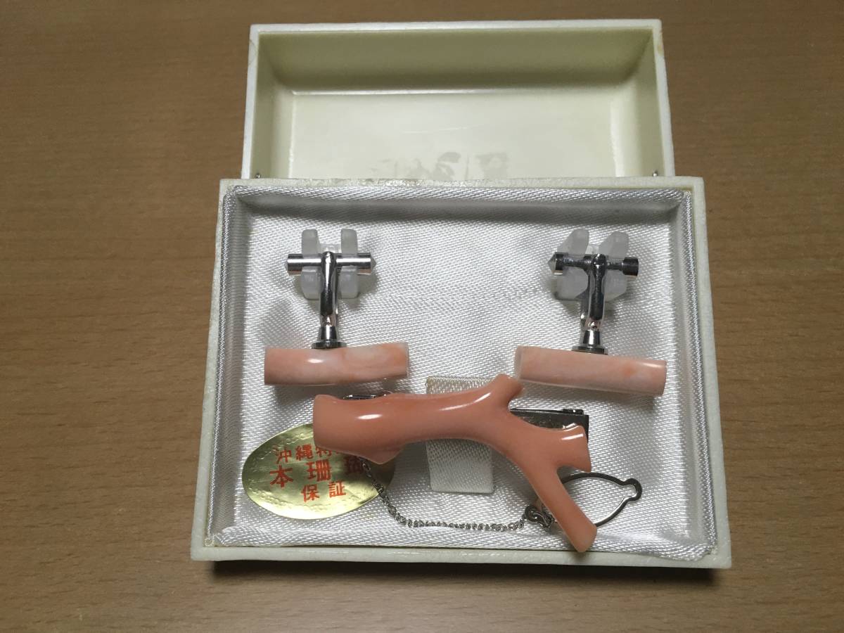 - 日本産 沖縄特産 本珊瑚 ピンク珊瑚 カフスとタイピン