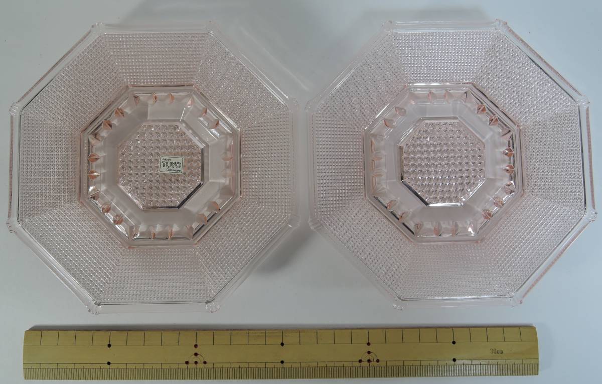 - ☆12H 昭和レトロ■東洋ガラス 八角形 ピンクガラス プレート2枚■未使用