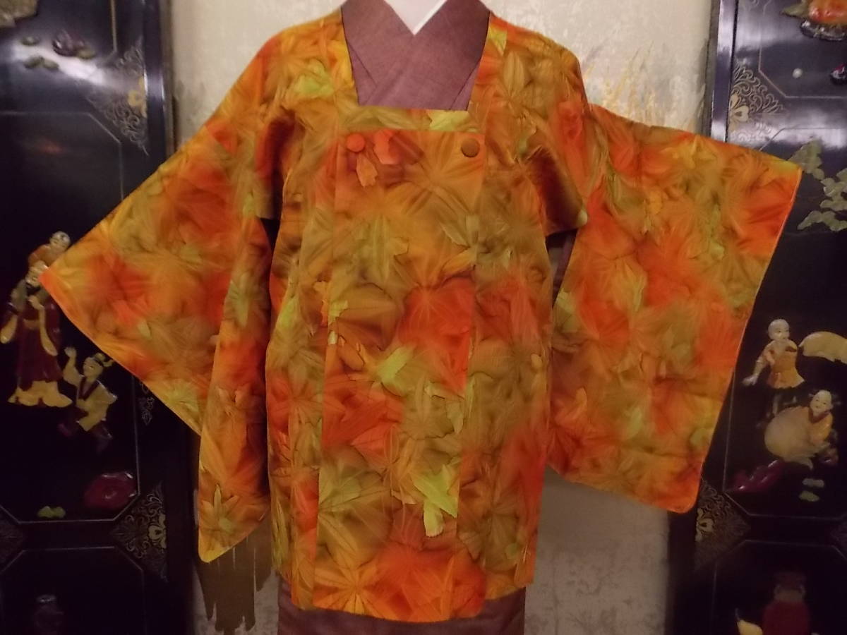 - きもの今昔2865 道行コートコレクション 正絹高級纐纈織(二重織りふくれ織とも言われます)蝋彩手描き染