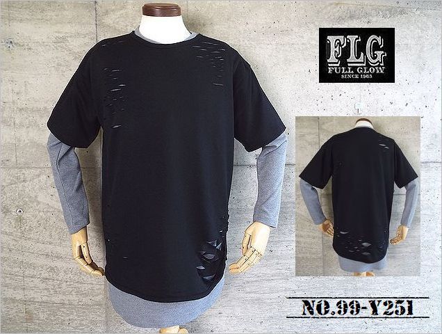 - 送料無料! 【FULL GLOW】ダメージ加工 アンサンブル 長袖Tシャツ NO.99-Y251 Mサイズ