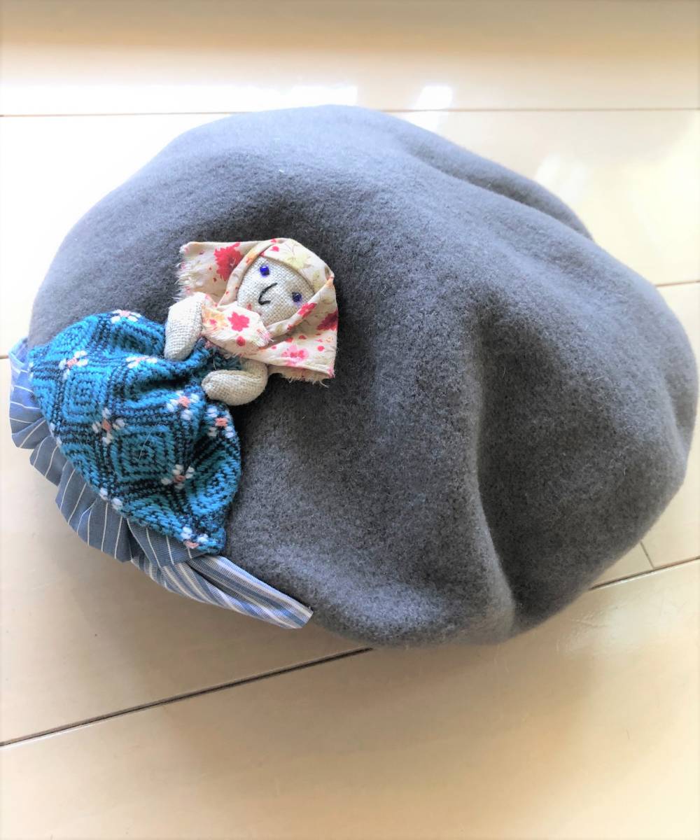 - 新品未使用★バーニーズ Barairono Boushi バラ色の帽子 ベレー帽 wool ウール グレー 帽子 ドール飾り★