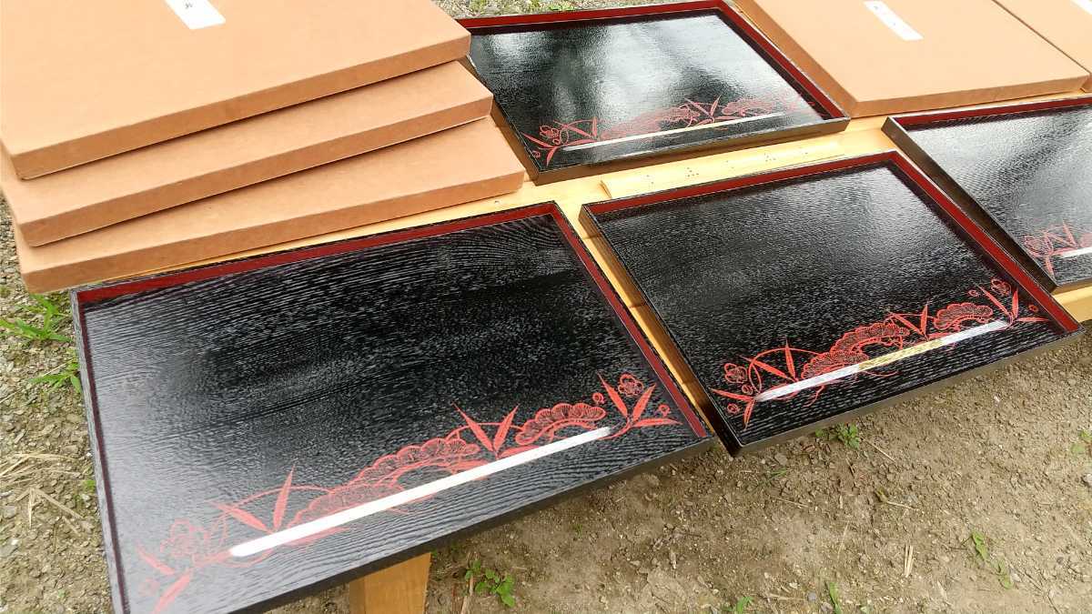 - 平安堂 松竹梅意匠 会席膳 5枚組 紙箱 【縦27㌢横39.5㌢高さ2㌢重さ330㌘】