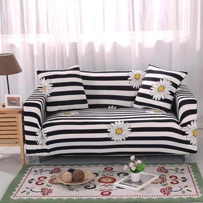 - 新品 ソファーカバー 縦横弾力 2人掛け用 四季適用 ボーダー 花柄 雰囲気 オシャレ 飾り クッションカバー付き