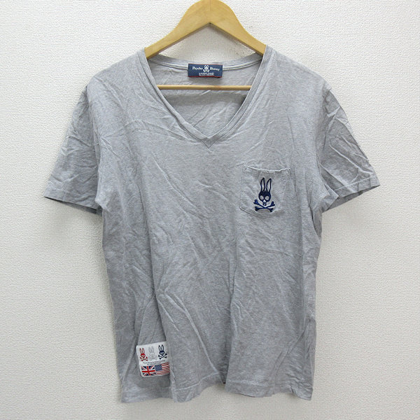 - y■サイコバニー/Psycho Bunny VネックTシャツ■灰【メンズM】MENS/62【中古】