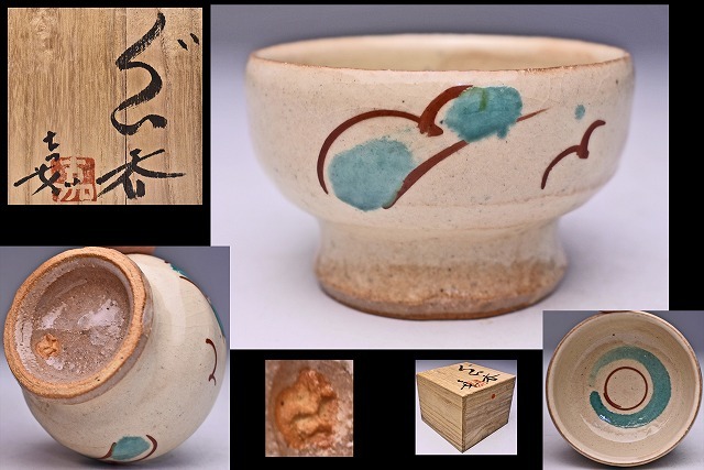 - 嘉 在銘 ★ 赤絵ぐい呑 ★ 共箱 ★ 沖縄 陶芸の雰囲気もある ★ 作者不明 ★ 壺屋焼風