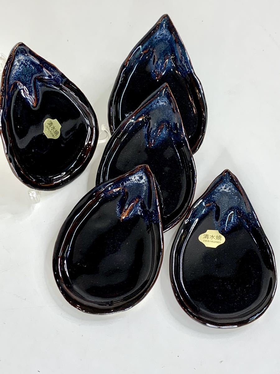 - 未使用品▼ 清水焼 茄子形 小皿 銘々皿 陶器 食器 銘あり 5枚セット 管理2110 Z-5