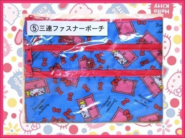 - ハローキティ ドラえもん×キティ コラボ 〔⑤3連ファスナーポーチ/ブルー〕<1点>美品