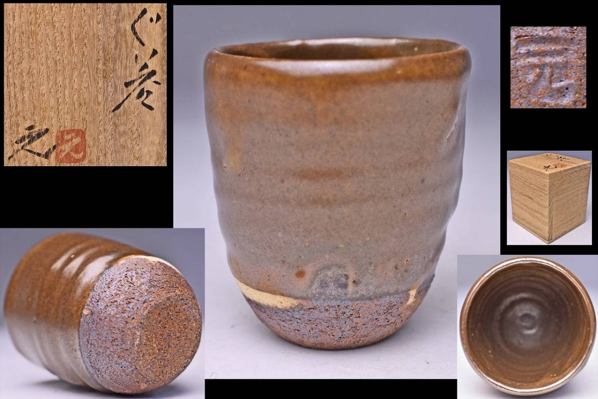 - 高鶴元 ★ 鉄釉 ぐい呑 ★ 共箱 ★ 上野焼 ★ 釉景が美しい逸品 ★ 酒器 ★ 小堀遠州七窯 ★