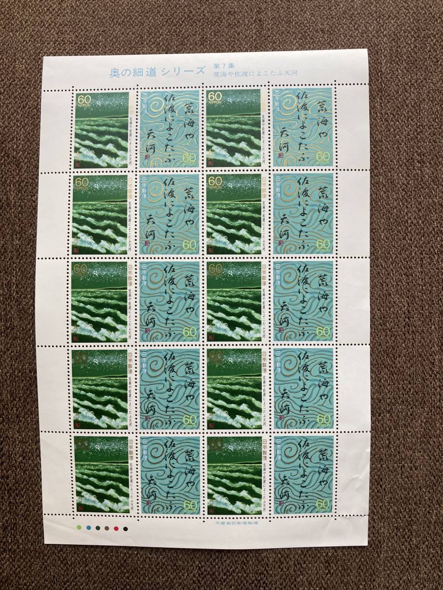 > ★未使用 奥の細道シリーズ 第7集 荒海や佐渡によこたふ天河 昭和63年 1988年 記念 切手シート 60円 20枚