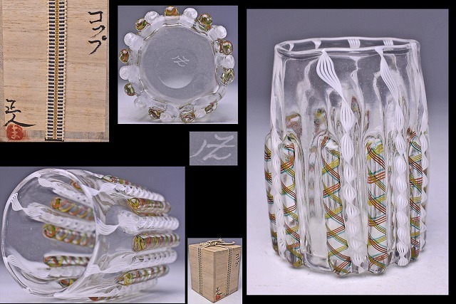 - 金子正人 ★ モールガラスコップ ★ 共箱 ★ 美しいデザイン ★ 千葉で活動 ★ グラス 硝子 ★ 湯呑