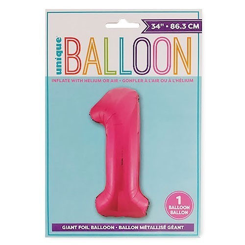 > 送料込 フォイル ナンバーバルーン (#1 ホットピンク) 34” 86.3cm 16048 風船 数字 数 大きい 誕生日 パーティーグッズ party 飾りつけ