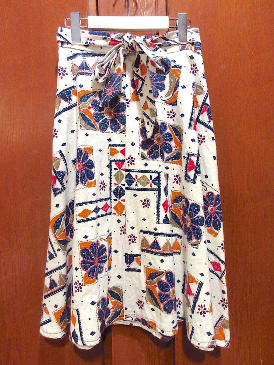 > ビンテージ70's●ハンドメイド花柄ラップスカート●211129r9-w-skt-wfフラワー巻きスカートレディース