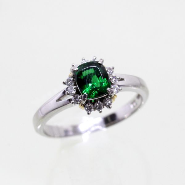 - ◎中古美品◎プラチナ,18金 グリーントルマリン 0.83ct ダイヤ 0.16ct リング 14号