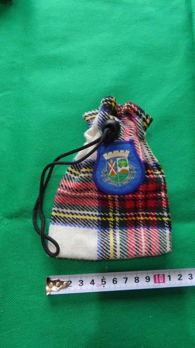- ★★OLD COURSE ST ANDREWS チェック柄 ウールミニ巾着袋(白系)E12