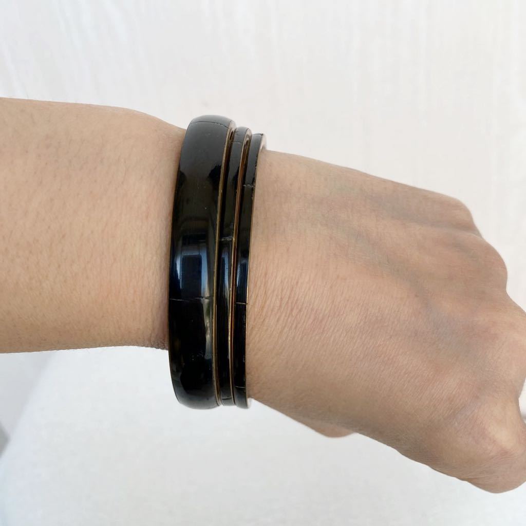 - レディース 3連 ブレスレット バングル ブラック ゴールドカラー 海外仕入