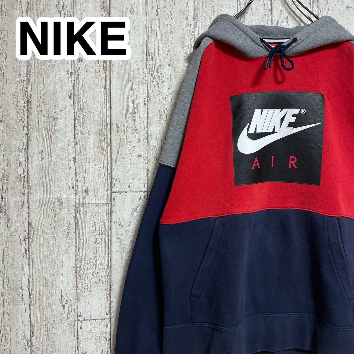 > 【定番アイテム】ナイキ NIKE スウェットパーカー Mサイズ レッド ネイビー ビッグロゴ 裏起毛 21-227