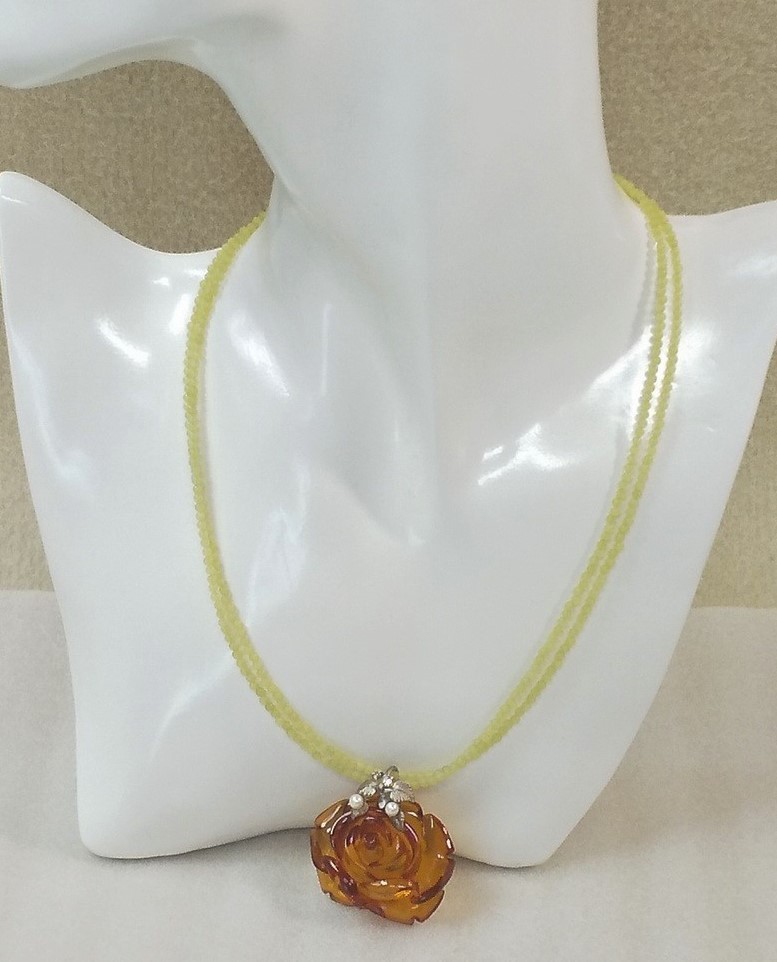 > ★最終8割引 琥珀 天然石 ネックレス イエローアンバー 薔薇 K18・シルバー イエローアゲ―ト丸玉2連★CG5510④